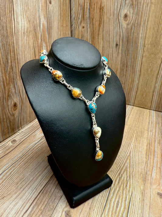 Spiny Oyster & Kingman Turquoise Dainty Lariat