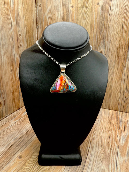 Spiny Oyster & Kingman Turquoise Pendant Necklace