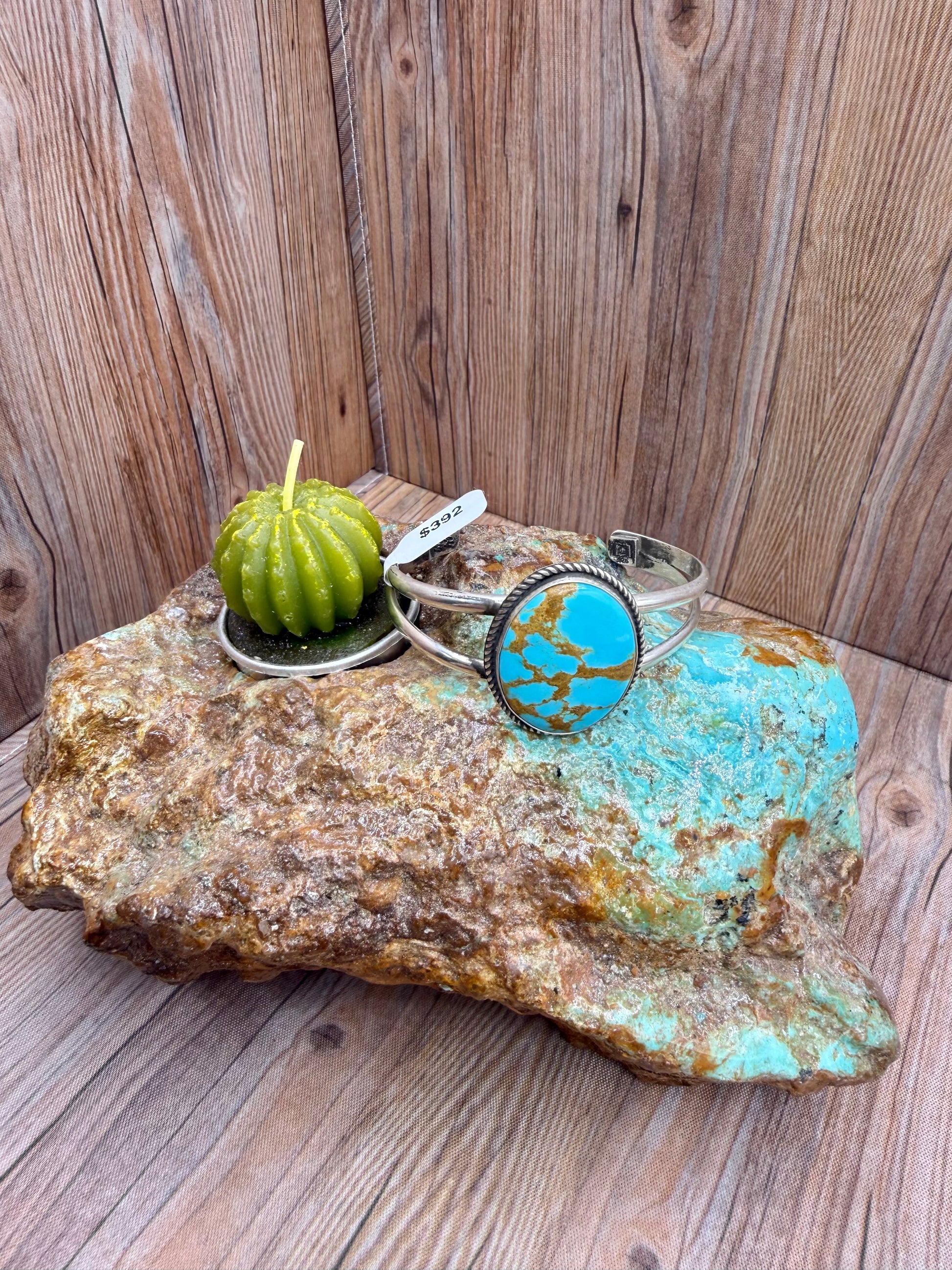 Kingman Turquoise set in sterling silver. Made by Josh.