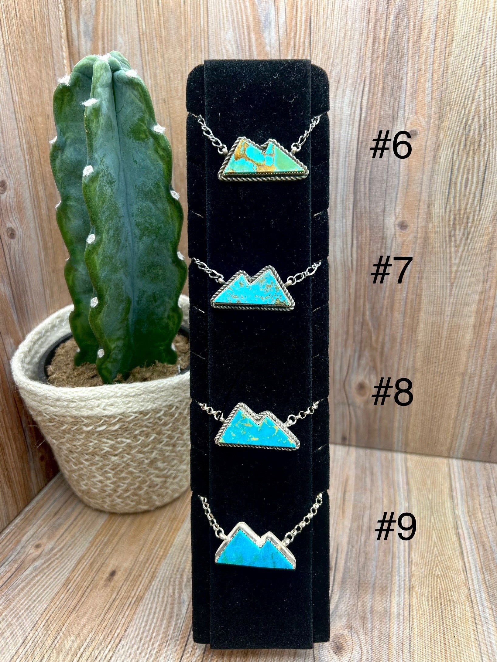 Kingman Turquoise mountains set in sterling silver. 16" sterling silver chain with a 2" extender.