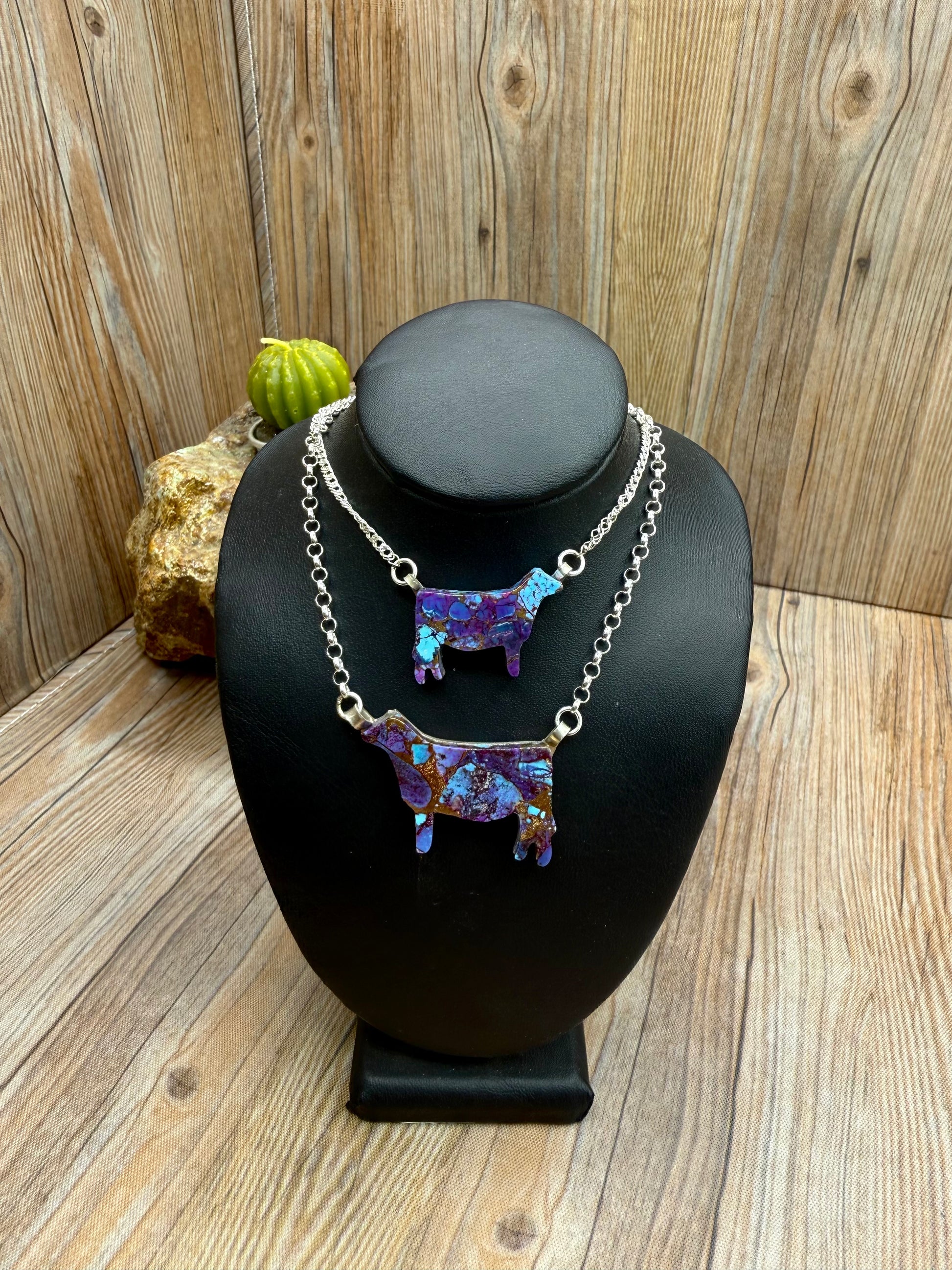 Mohave Purple cow pendants! Backed with a sterling silver plate, on a 16" sterling silver chain. Available in two sizes. Pendants picked at random!