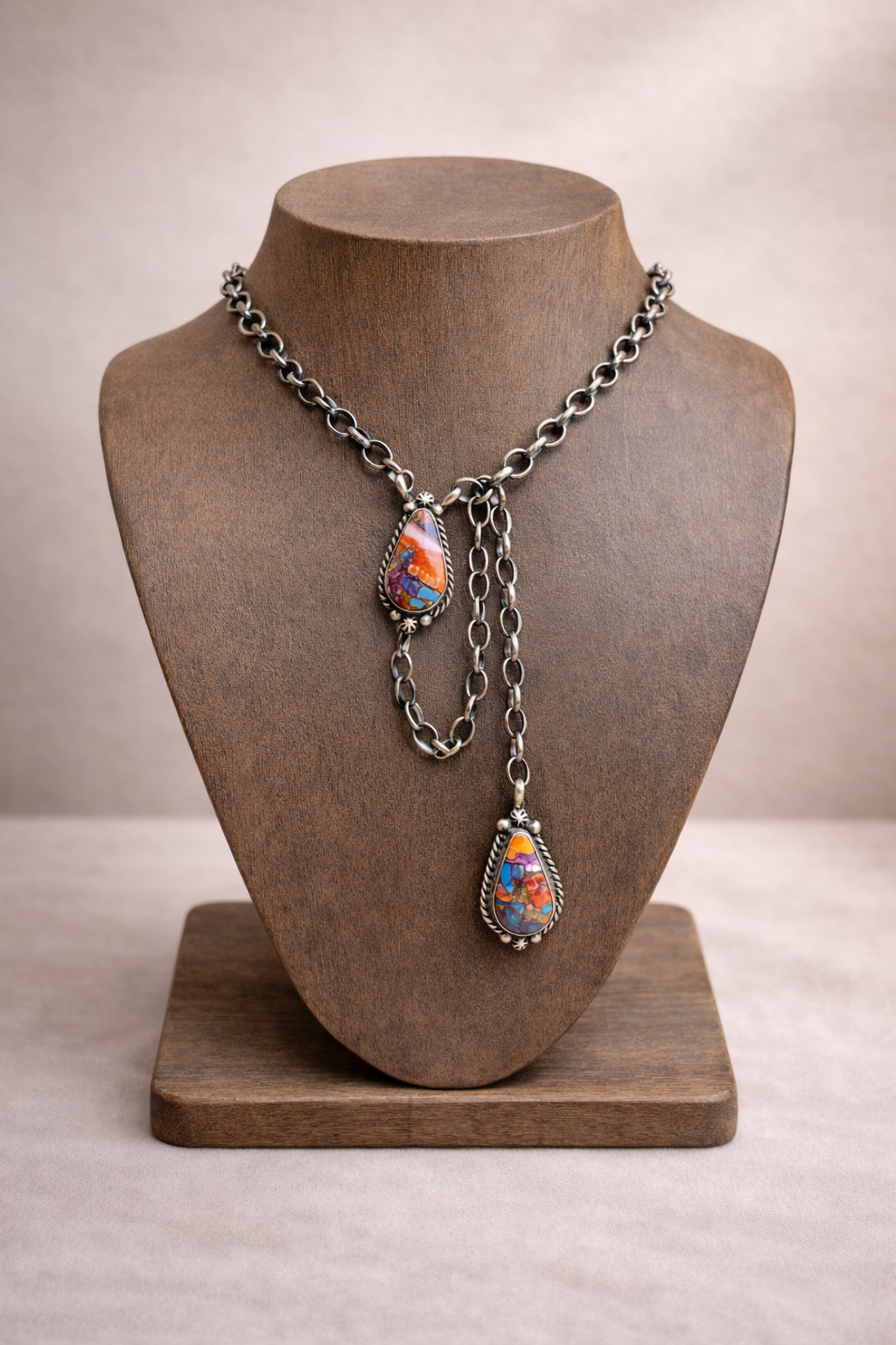 Orange Dahlia lariat, set in sterling silver.